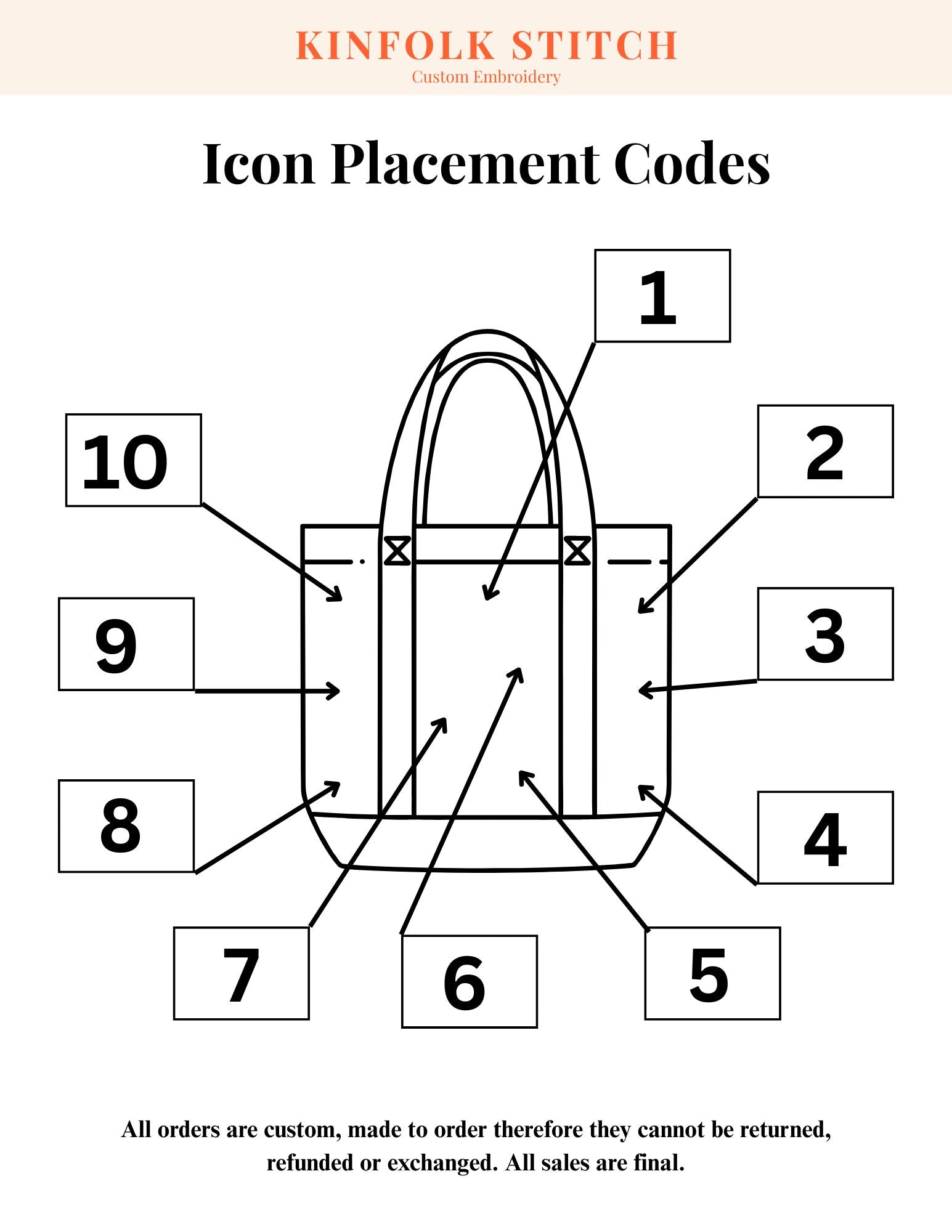 Large Heavy Weight Tote Bag: HERE (max 15 icons)
