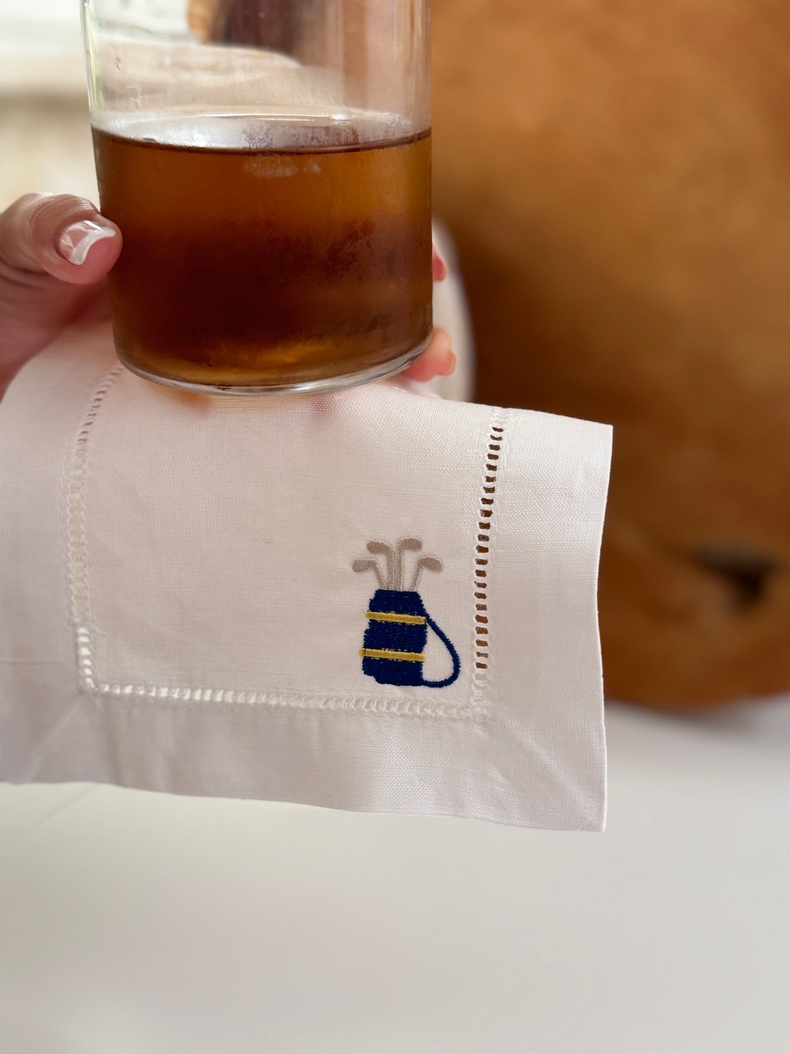 Looking for a present for your dad? Brother? Boyfriend? Or having all of your golfing ladies over? We found your answer! These golfing cocktail napkins would be the perfect gift for that special person! Or elevate your next event with these made to order golf embroidered cocktail napkins. Shop a wide variety from our specialty designs or choose your own customization on one of our shop items.