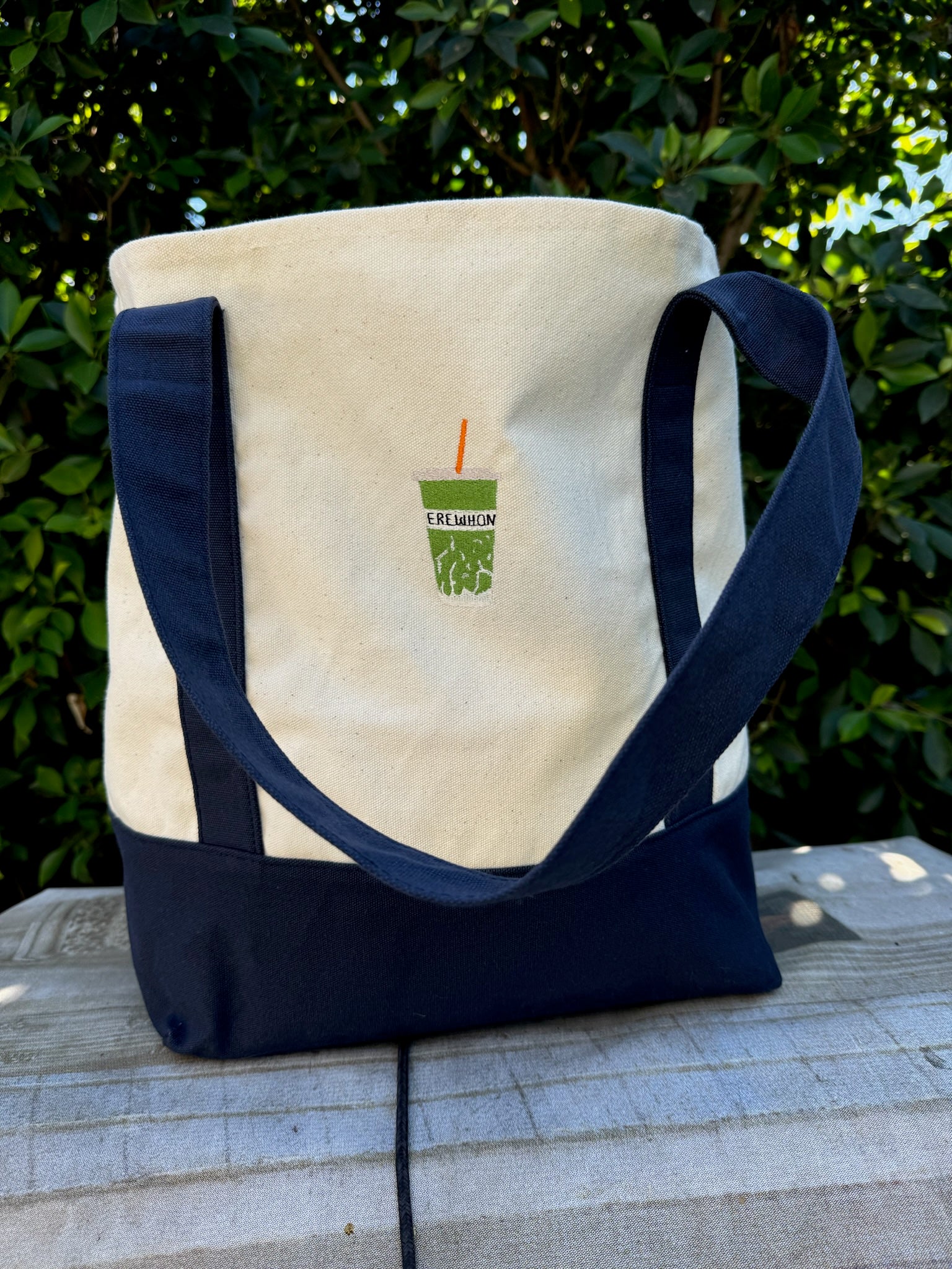 Stay stylish and eco-friendly with our Smoothie Tote Bag. Made with a durable fabric and featuring a fun green smoothie icon design with a navy blue base and straps. This tote is perfect for carrying your daily essentials and showing off your love for smoothies. Stay fashion-forward while reducing plastic bag waste.